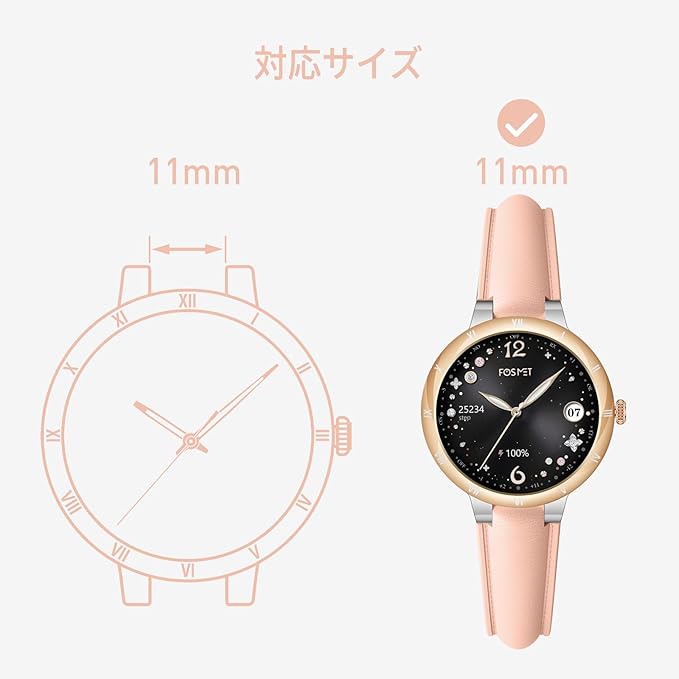 [FOSMET] WONDER W1スマートウォッチ ベルト 11mm レディース 本革 レザー 交換バンド W1対応
