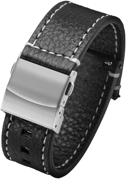 【高品質本革とステッチ採用】 22mm スマートウォッチバンドには、両面本革ライチ柄を使用し、裏地も両面本革を挟み込んだ構造で、厚みは 3mm に達します!柔らかく軽量で、手首に密着して快適な着用感を実現;さらに高靭性のミシン掛け工法を採用し、針目の間隔が均等、針落ちが平行、糸道がスムーズに精密に縫製されているため、バンドが裂けにくく耐用性に優れます。