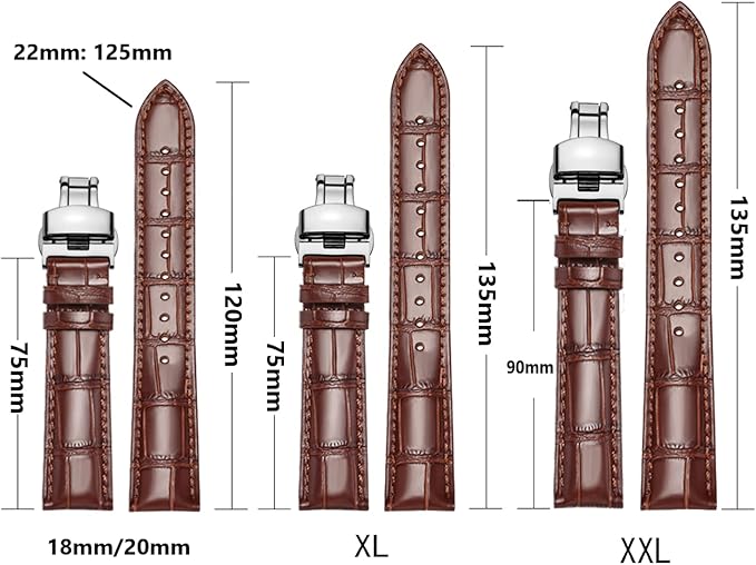 ⭐【バンド幅】:時計取付幅: 20mm-XXL(尾錠巾:18mm);短ベルト長さは90mmです,長ベルトの長さは135mm;フロントエンドの厚さ3.1mm、リアエンドの厚さ5.1mm。手首のサイズに合わせて9つの調整穴を柔軟に調整できます。