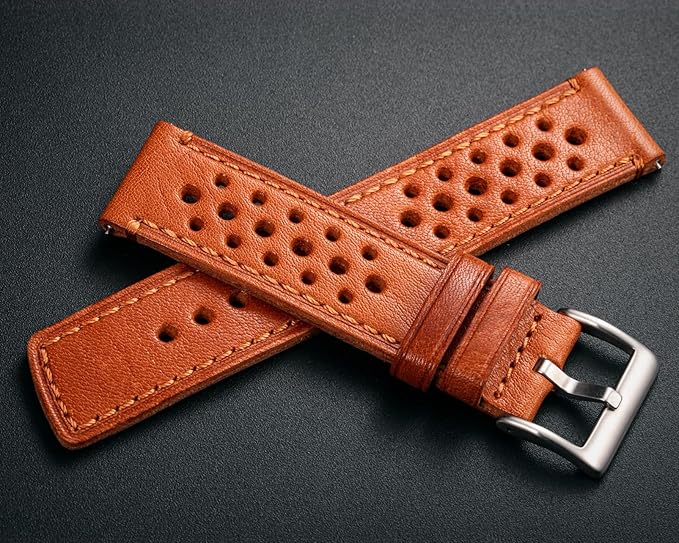 [hemsut h] 本革時計バンド 穴あきデザイン、柔らかく、曲げやすいイタリア製植物タンニンなめし革クイックリリースバンド