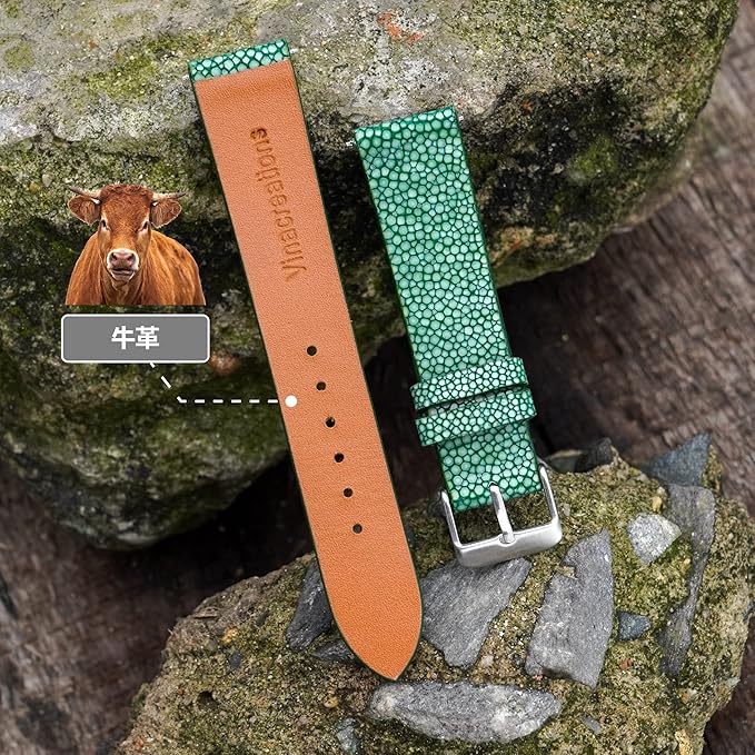 [vinacreations] ガルーシャ腕時計ベルト エイ皮交換用時計バンド 平らで薄いベルト スティングレイ革ベルト 腕首バックル付き 手作りメンズ ハンドメイド