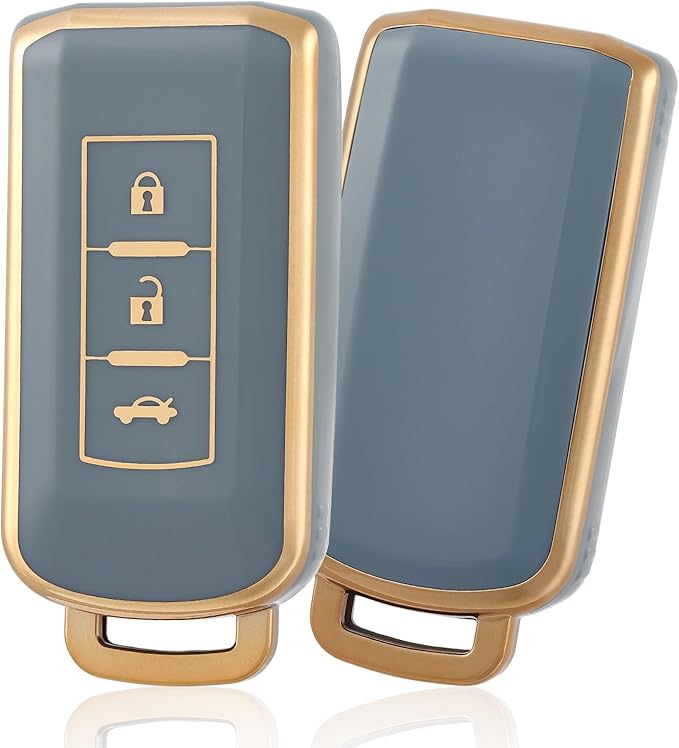キーシェル TPU 車のキーカバー キーケース 互換 ジャスパー 新型 アウトランダー トライトン キーカバー 三菱 Outlander 新型三菱 互換スマートキーケース,3ボタン,ブルーゴールド