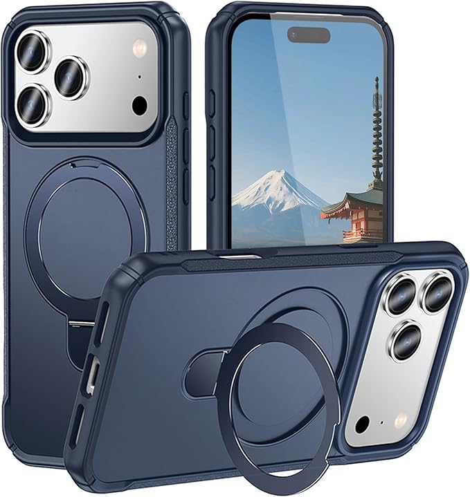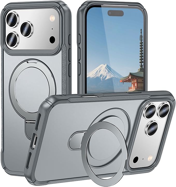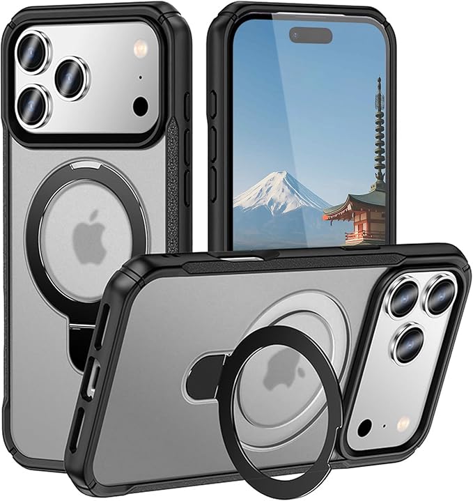 iPhone 17 Pro Max 用 ケース MagSafe対応 360 回転スタンド リング付き マットカラー 米軍規格 耐衝撃 カメラ保護 軽量 ストラップホール付き (クリア)