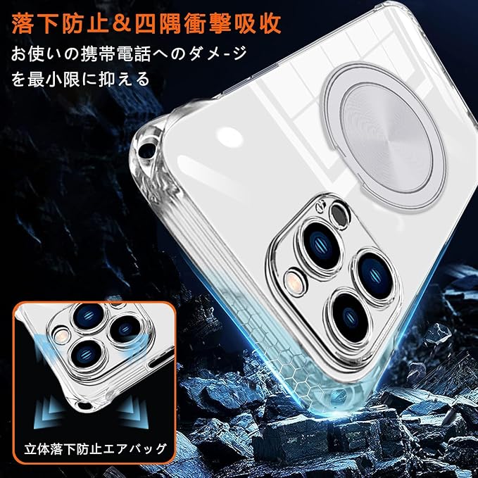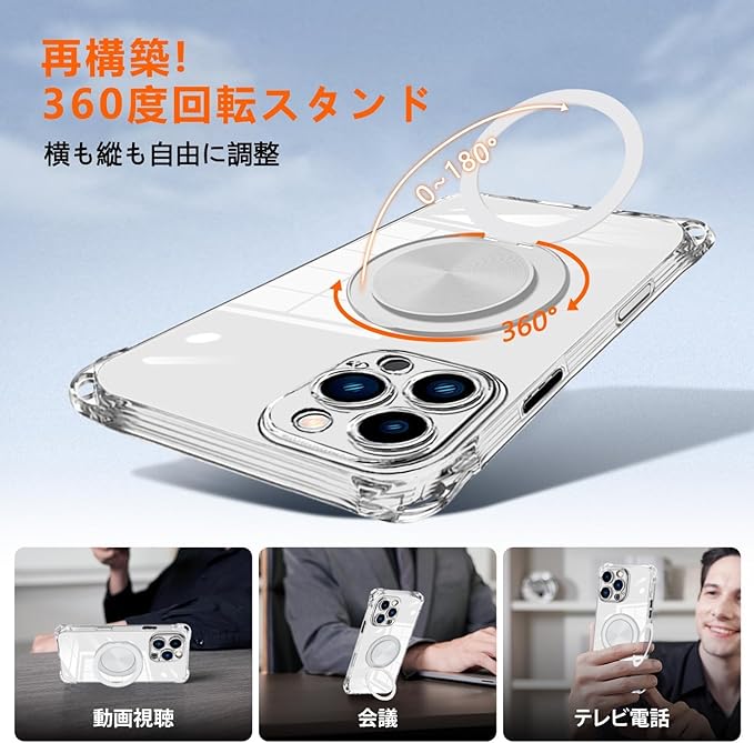 iPhone 17 Pro Max 用 ケース クリア MagSafe対応 リング スタンド 360度回転できる ワイヤレス充電 ネック ショルダー あいほん 17 pro max カバー 肩掛け 首掛け 斜めがけ 紐付き 韓国 耐衝撃 米軍MIL規格取得 スタンド機能 縦横両対応 落下防止 透明 TPU 薄型 軽量 黄変なしスタンド機能車載対応 アイフォン 17 promax スマホケース