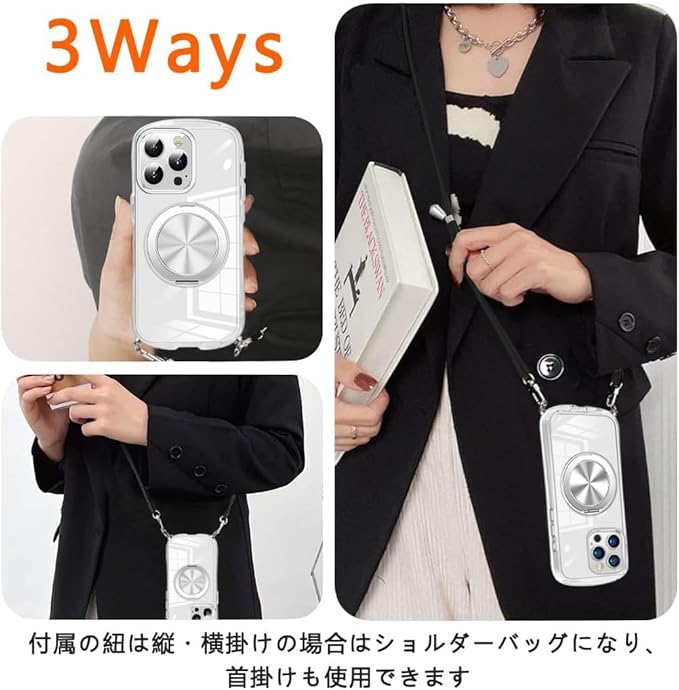 【互換性モデル】iPhone 17 Pro Max 適用 ケース。※ご注意:ご注文する前に、必ずお買い求めの機種とカラーを確認してください。 【MagSafe ワイヤレス充電・スピーディー且つ自由な充電体験】iPhone 17 Pro Max 用ケースには高度な MagSafe 磁気吸着ワイヤレス充電機能が搭載され、利便性の高い充電体験を新たな次元に引き上げました。正確な磁気吸着で位置決めが完了し、「貼り付けるだけで充電開始」となり、煩わしい差し込み操作を廃し、充電プロセスをスムーズに実現します。さらに高性能ワイヤレス充電技術により、安定的かつスピーディーな給電を確保しており、日常的な充電補給から緊急時の持続稼働まで幅広いニーズに柔軟に対応可能です。自宅でのゆったりとした時間、オフィスでの休憩時間、それに旅先での移動中など、あらゆる場面で MagSafe ワイヤレス充電機能がシームレスに適応し、途切れることのない電力サポートを提供し、テクノロジーがもたらす快適さと効率を存分に楽しんでください。 【全面保護】優れた保護性能,耐久性に優れた、傷がつきにくい,衝撃吸収性の高いTPU素材,衝撃やキズ、埃などからしっかりとスマホの背面を守ります。で落下衝撃から本体をしっかりと守ってくれます。フチをわずかに高く設計することで、日常生活の消耗に耐えしっかり保護できる、スマホへの傷つけを防止します。スマホを落としてしまっても衝撃を最小限に抑えるケース。専用にオリジナル設計しているためぴったりとフィットし、保護性能には欠かせないポイントとなっています。 【長さ調整可能 & ストラップの脱着が1秒で可能】調節可能なストラップにより、サイド、またはフロントに持ち運べるときに完璧にあなたの隣に掛けることができます。 このアクセサリーはファッションだけでなく、通常のストラップよりも快適で実用的です。それらは非常に耐性があり、湿気を吸収せず、無臭で乾燥しています。 それはあなたの手に自由を与えます。 ネックストラップはお好みの長さに調節できます。ストラップはいつでも取り外して身につけることができます、好きなように着こなす。