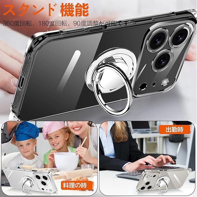 【リングの機能】360 回転可能リングホルダーです。片手で携帯を操作でき、滑り止め、強奪、落下などのことを防げます。リング.ホルダーの機能は携帯を横に放置できて、いつでもどこでも音楽、facetime、映画などの娯楽番組を思い切り楽しめます。