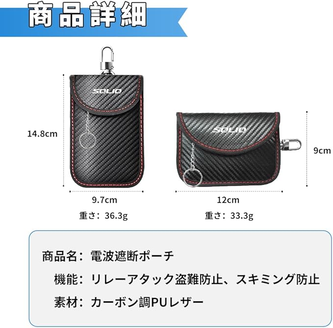 [Honazys] ソリオ 適用 電波遮断ポーチ 車用 電波遮断キーケース リレーアタック対策 ソリオ ハイブリッド MG MX MZ グレード 対応 りれーアタック防止 車 キーケース 信号遮断 スマートキー用 個人情報保護 スキミング防止 車用品 カー 盗難防止 防犯グッズ 1枚入り