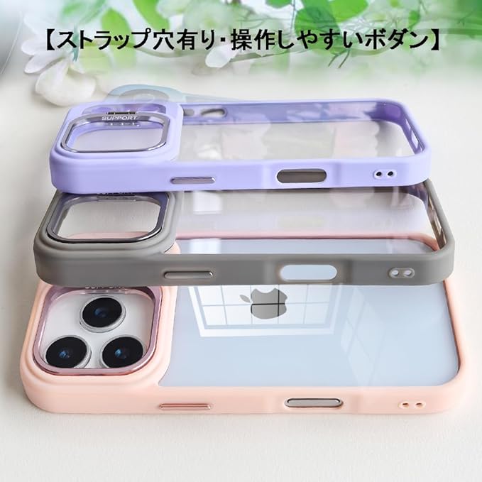 スマホケース 対応 クリア 透明 レンズスタンド付き スタンド機能 レンズカバー付き PC背面+TPUバンパー おしゃれ 耐衝撃 ストラップホール付き 携帯電話ケース