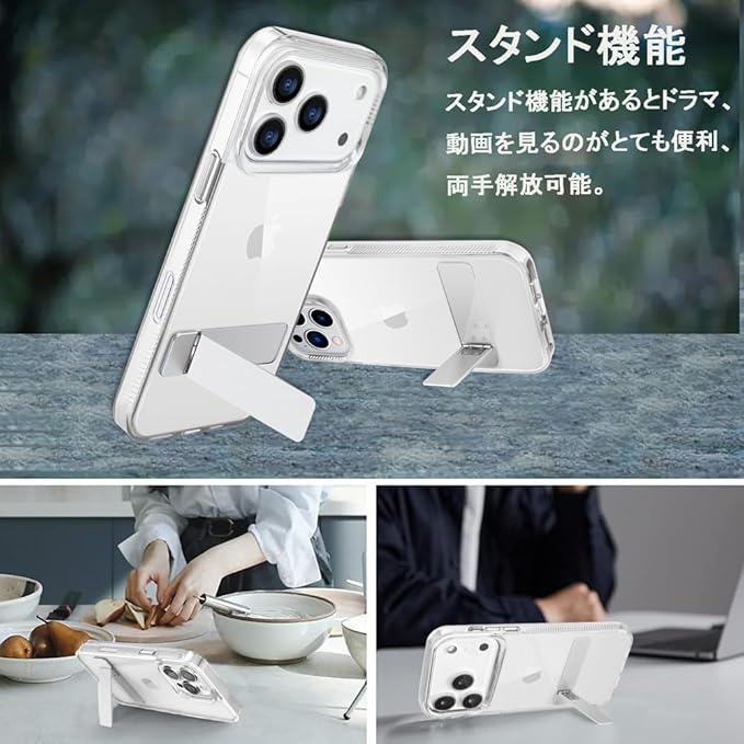 【極限透明感・機能スタンド】YUYIB スマホケース 対応 ケース クリア スタンド機能 (メタルキック 3wayスタンドモード) 衝撃吸収 黄変防止/擦り傷防止 耐久性 薄型 軽量 スマホケース 対応 アイフォン カバー
