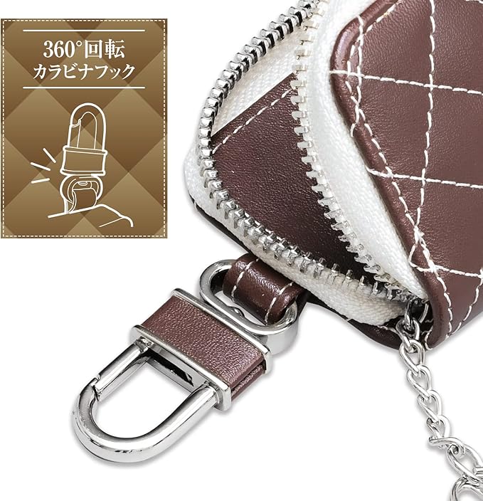 セイワ(SEIWA) 車内用品 キルト スマートキーケース ソフト素材 WA116 ブラウン コインポケット付き カラビナフック カー用品