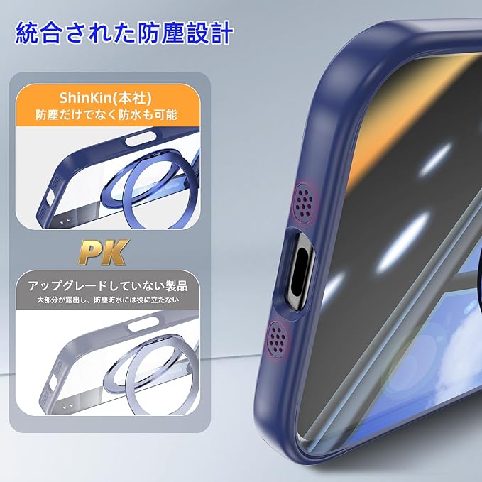 [ShinKin] スマホケース iPhone 17 Pro Max 用 ケース カバー 透明PC + TPU素材 ケース リング付き カバー スタンド機能 スマホケース 透明レンズフィルム保護機能付き 強化された保護 携帯電話のレンズフィルム 軽量 耐衝撃 擦り傷防止 落下防止 車載ホルダー 360 回転 ケース iPhone 17 Pro Max 用 (ブルー)