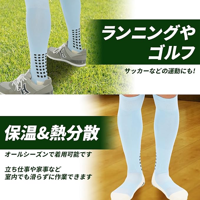 [QQOLi] 【現役整体師監修】 滑り止め 靴下 ソックス 着圧 グリップ力 衝撃吸収 通気性 ランニング 登山 ゴルフ サッカー フットサル スポーツ メンズ レディース 速乾吸収 抗菌防臭【グリップ&リカバリー】 | A GEN STORE