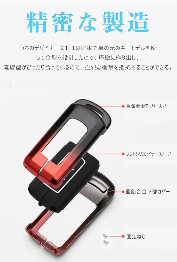 [LETINGFAR] キーケース 三菱用 スマートキーケース キーカバー 2ボタン 亜鉛合金 シリコン 三菱専用設計 キーホルダー ekワゴン/ekスペース/ミラージュ 等適用 キーケース