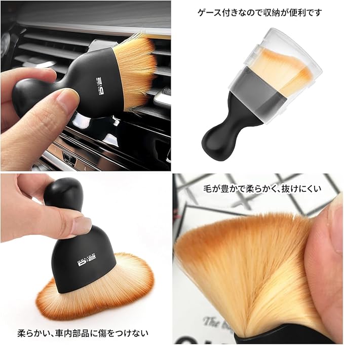 【車内清掃 ・ホコリ取りブラシ】ブラシには柔軟な超細繊維ブリッスル使われており, 掃除の際、車内インテリアに傷がつきません。エアコンの吹き出し口、インテリアパネル、ギアレバー、シートの隙間などの車内の掃除に非常に適しています。保管に便利な保護カバー付きの小型サイズ、水洗いOK。