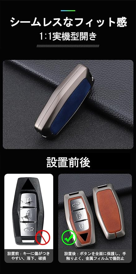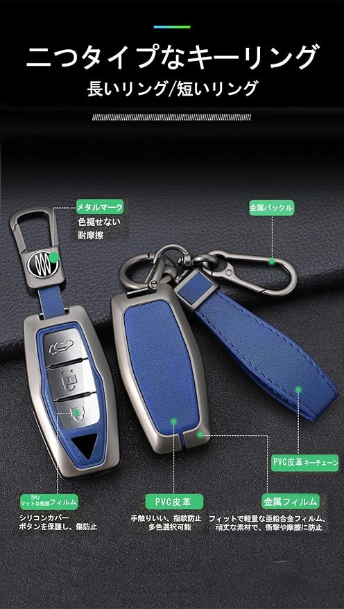 [TECART] 三菱専用 キーケース 三菱 アウトランダー キーカバー Outlander キーホルダー 新型アウトランダー GN0W PHEV 3代目 などに適応 スマートキーケース アルミ合金と革製 34ボタン ブラック