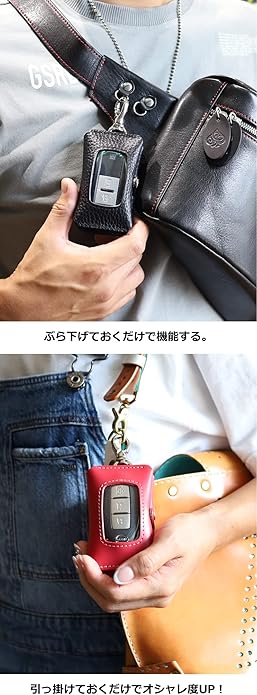 コンパクトにスマートキーを2個持ちしたい方にオススメ!ナスカンが回転するから、どちらも入れたままで操作しやすい!