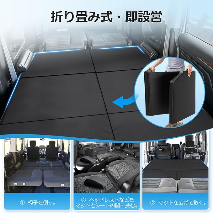 2.【折り畳み式・即設営/収納】従来の空気入れタイプは、空気漏れがやすく、設置も収納も手間がかかりすぎます!そこで、こちらの車中泊マットは便利な折りたたみ式で、設置/収納が一瞬でできます。座席を倒すだけで、一人だけ自由自在な空間ができます!キャンプや車内で一休みをしたい方にいつでもどこでも快適な睡眠をすばやく取らせることができます。
