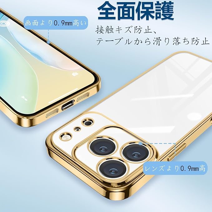 【おしゃれなデザイン】フレームは3層メッキ加工技術と超微細なレーザー加工技術、によって設計iPhone本体の美しさを更に引き立て高級感のあるiPhone用のケース。 裏面は透明の為、本体の色をそのまま映し出すことができ端末のオリジナルカラーを損ねません。透明な背面はiPhone本来の美しさを示し、フレームのメッキはよりおしゃれに感じます。