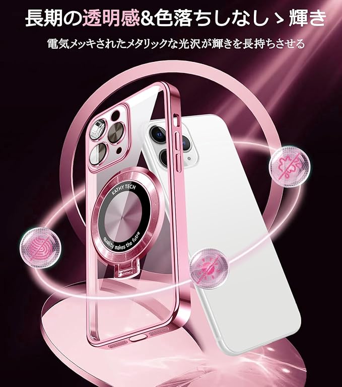 iPhone 11 Pro Max 用 ケース クリア MagSafe対応 アイフォン11ProMax カバー 縦横両対応 多機能一体スタンド 透明 TPU 耐衝撃 薄型 軽量 レンズ保護 Qi ワイヤレス充電対応 iphone11pro max スマホケース(ローズゴールド)