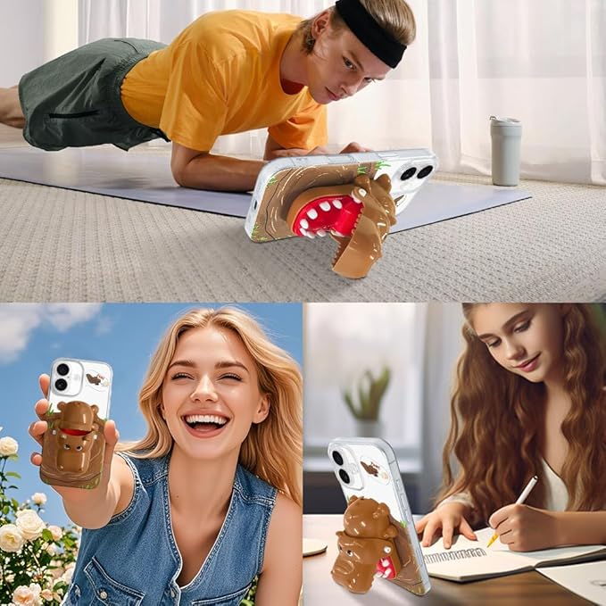 【カバパニック】リラックスできる簡単なゲームとスマホケースを一体化した製品で、非常に使いやすい設計です。 さらにスマホスタンドとしても使用可能で、背面にはカバの形をしたおもちゃが付いています。使用方法の具体的な説明は画像で確認できます。