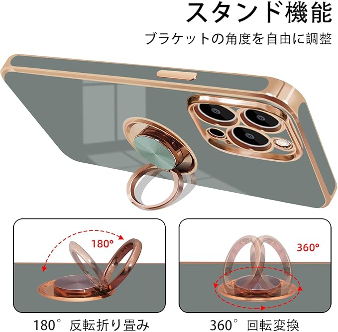 iphone 14 pro max ケース リング アイフォン14 pro max ケース 回転スタンド 耐衝撃 スマホケース 360 回転 リング付き スタンド機能 ストラップホール付き 車載ホルダー対応 TPU メッキ加工 いphone14pro max カバー 6.7インチ用 (グレー)