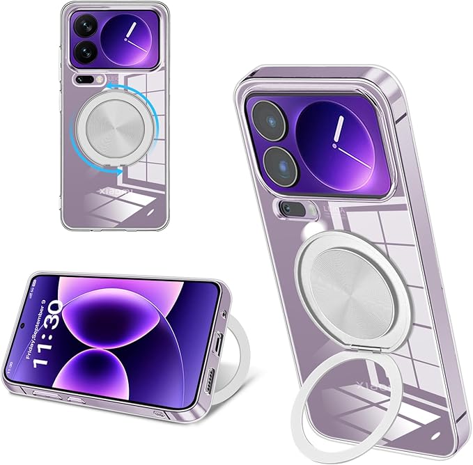 Xiaomi 17 Pro Max ケース クリア シリコン MagSafe対応 リング付き 360 回転スタンド 縦横両対応 アジャスタブルスタンド マット仕上げ 耐衝撃 スマホ ケース グーグル ピクセルカバー 衝撃吸収ポケット内蔵 TPU 薄型軽量 ストラップホール付き Xiaomi 17promax 保護カバー