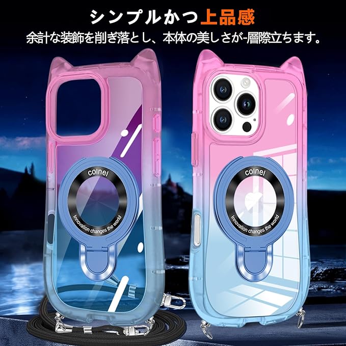 iPhone 17 Pro Max 用 ケース クリア MagSafe対応 リング付き TPU バンパー ネック ショルダー あいほん 17 promax カラー 猫耳 携帯カバー 肩掛け 首掛け 斜めがけ 紐付き 韓国 かわいいファッション 耐衝撃 車載対応 アイフォン 17 PRO MAX スマホケース