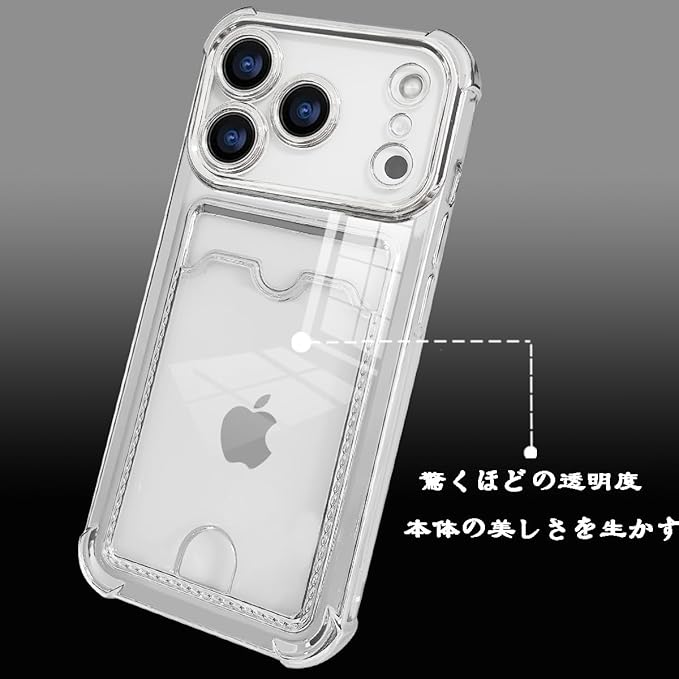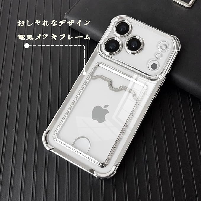 スマホケース 対応 iPhone17 Pro Max クリアケース 透明 メッキ加工 カード収納 かわいい おしゃれ キャラクター 軽量 薄型 便利 衝撃吸収 ブランド ストラップ穴あり アイフォン17プロマックス 携帯用カバー (17 Pro Max)