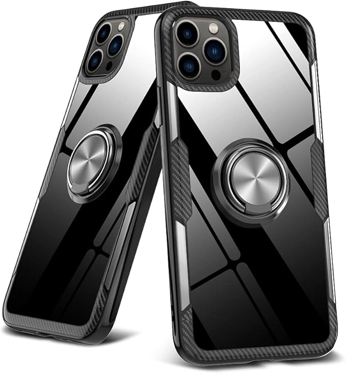 iPhone 13 Pro Max 用ケース クリア リング付き 耐衝撃 薄型 全面保護 背面強化ガラスケース クリア TPUバンパー スタンド機能 透明 落下防止 耐衝撃 擦り傷防止 指紋防止 360度回転 マグネット 車載スタンド対応 アイフォン13 pro max用カバー 軽量 人気 一体型 全面保護カバー 銀黒 B279