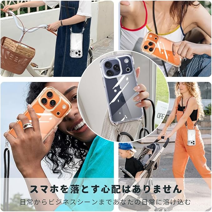 iPhone 17 Pro Max 用の ケース ショルダー ストラップ iPhone17ProMax 用の カバー クリア 肩掛け 斜めかけ 韓国 アイフォン17ProMax 用 透明 スマホケース (クリア)