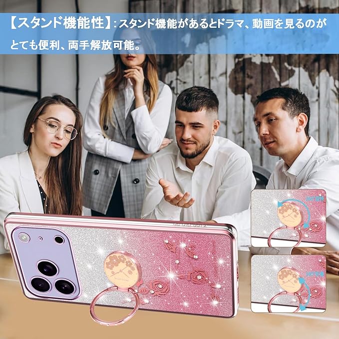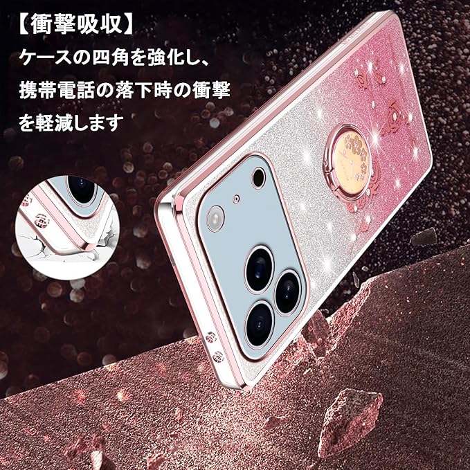 スマホケース 対応 iPhone 17 Pro Maxケース リング付き クリア キラキラ メッキ加工 花柄 ソフトケース TPU 薄型 おしゃれ かわいい 衝撃吸収 ブランド アイフォン17プロマックス カバー (ピンク)