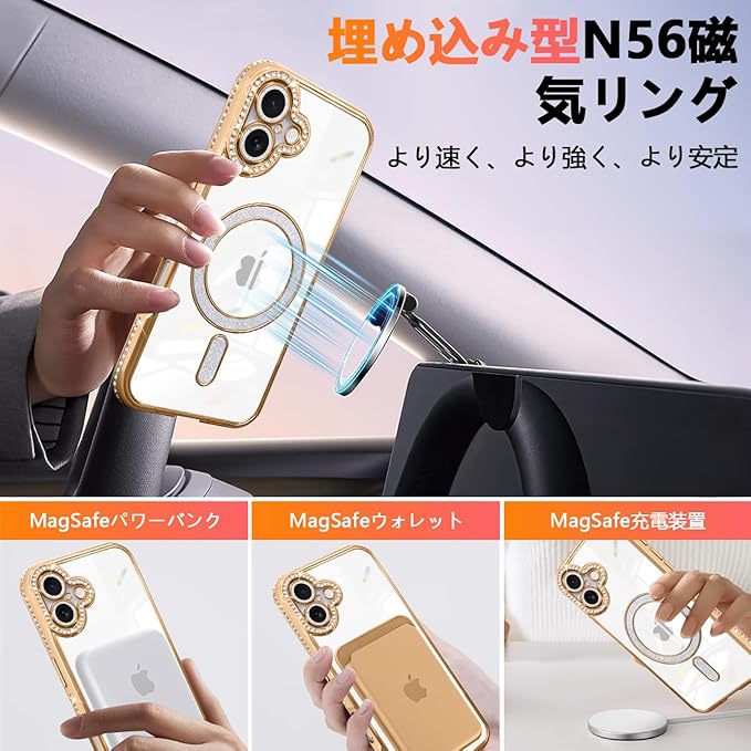 互換 iPhone 17 pro max ケース クリア 薄型 いphone17promax カバー サイドドリル 磁気吸引式携帯ケース TPU 軽量 ファッション アイフォン17プロマックス スマホケース ワイヤレス充電 フラッシュドリル磁気吸殻 耐衝撃 シリコン 転倒防止 耐久性 黄変防止 ひっかき防止 ポータブル レンズ保護スマホ めっき技術(ゴールド)