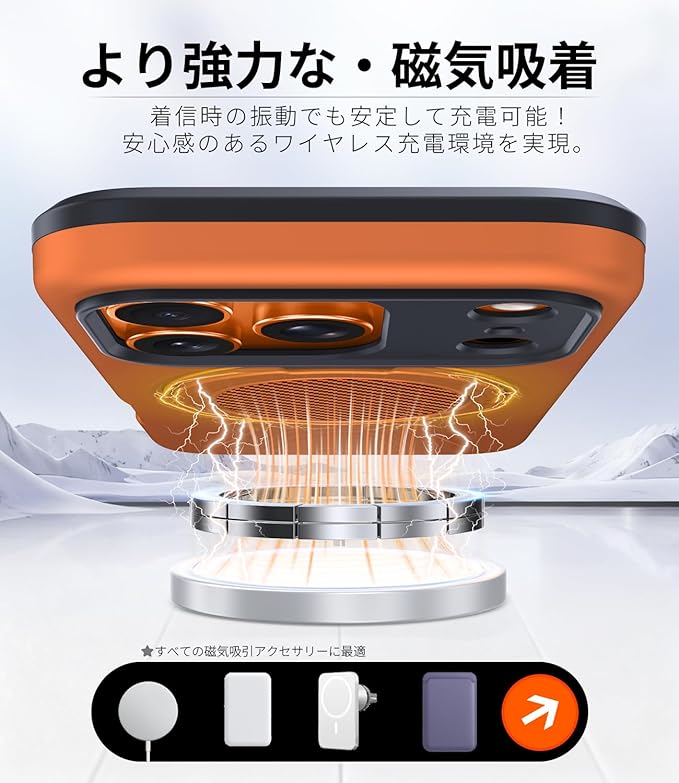 【ワイヤレス充電&マグネット式カーマウントをサポート】:対応ワイヤレス充電、全体的な充電時間を短縮し、ワイヤレス充電体験をさらに向上させます。このケースに内蔵された金属板は簡単に直接マグネット式カーマウントに取り付けることができます。