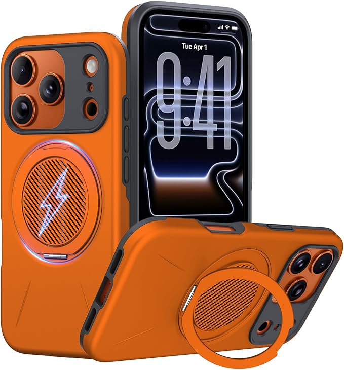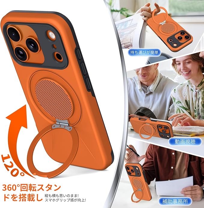 対応iPhone 17 Pro Max用 ケース magsafe対応 リング付き 耐衝撃 米軍MIL規格 リング マグネット搭載 ワイヤレス充電可能 多機能360度回転 指紋防止 黄変防止 車載ホルダー オレンジ C99-ip17pm-05