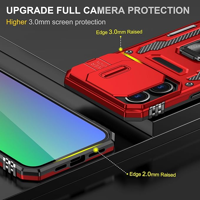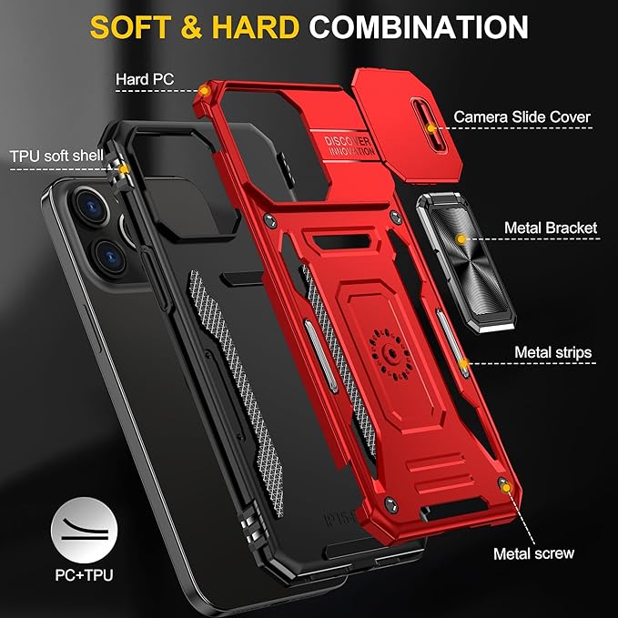 対応 iPhone 14 Pro Max 用の ケース リング付き スライド式カメラカバー 耐衝撃 スタンド機能 車載ホルダー レンズ保護 アイフォン14 プロマックス 用の スマホケース PC TPUバンパー 防塵 人気 落下防止 滑り止め 指紋防止 携帯カバー 赤 K142