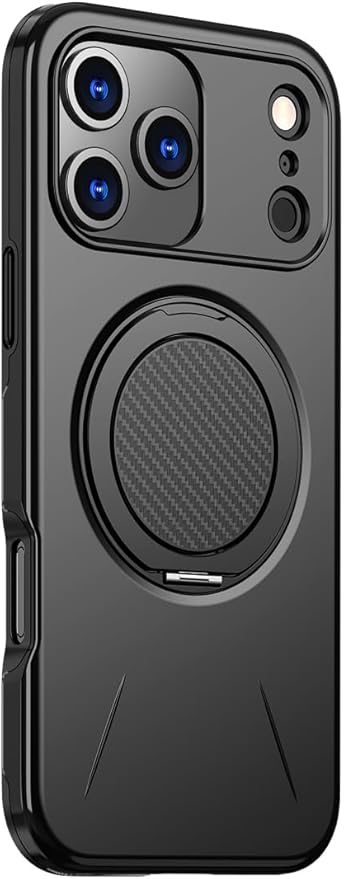 for iPhone 17 Pro Max ケース MagSafe対応 横縦両立 リング 【多機能 360 回転スタンド・二層設計】 米軍MIL規格 耐衝撃 防指紋 いphone17ProMax ケース アイフォン アイホン (黒) KPCT-17ProMax-hei