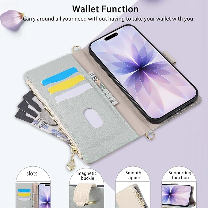 【上質な素材】ケースは高品質のPUと柔らかいTPU素材を採用し、360 全方位保護、快適な手触り、優れた放熱性と衝撃吸収性、耐久性と保護性を両立しています。繊細なステッチ、手触りと質感を兼ね備えたゴールドのメタルジッパー、高品質のメタルマグネットクラスプ、開閉が簡単、豪華でシックなデザイン、あなたのファッションセンスを高めます。