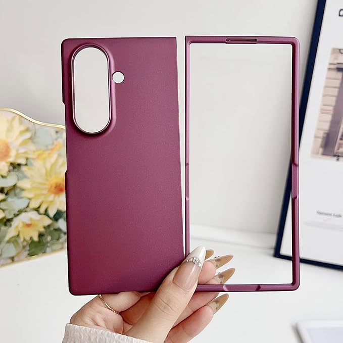 【Galaxy Z Fold7専用】ケース 360 全周保護 超薄 軽量 メタリック&ワイヤレス充電対応 マットの表面 人気 レンズ保護 携帯電話 カバー 面白い おしゃれ フリップ 滑り防止 指紋防止 スマホ 可愛い Beautycatcher - ワインレッド