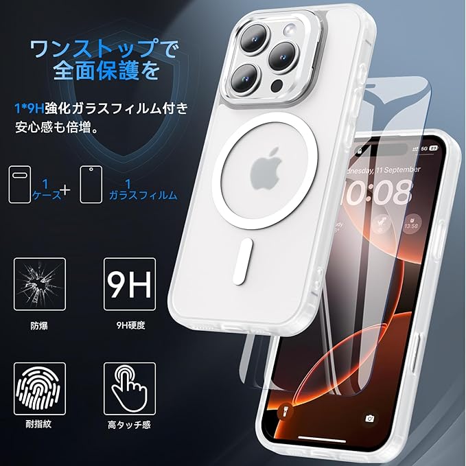 【対応機種&パッケージの内容】iPhone 16 Pro Max 6.9インチ対応専用ケースで、対応機種を間違いないようにご購入お願い申し上げます。2024年最新モデル、iPhone 16 Pro Max専用にデザインされた半透明・薄型・Magsafe対応・ガラスフィルム付き・スタンド機能付きのケースで、実用的・便利・おしゃれで、年齢やシーンを問わずお使いいただけます。パッケージの内容:ケース*1 ガラスフィルム*1 セットのインストールパッケージ*1