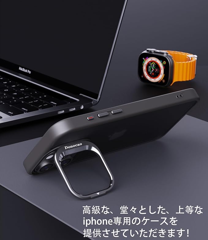*【対応機種と素材】iPhone 15 ProMax対応、サイズ:6.7インチ対応、ケースのサイズ:約縦16 横8.5 厚1.1 cm 主素材:シリコーンサイド、アクリル背面マット感のプレート、合金のカメラ隠しスタンド、メッキ金属ボタン、御洒落な9H強い硬度ガラスレンズを贈ります。御アイフォンをしっかり守れます。