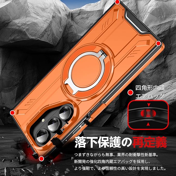 対応 Galaxy Z Fold7 用 ケース Magnetic対応 リング スタンド機能 耐衝撃 TPU+PC 軽量 滑り止め 落下保護 車載ホルダー対応 ギャラクシー Z フォールド7 5G 携帯カバー オレンジ R-LS-Fold7-06