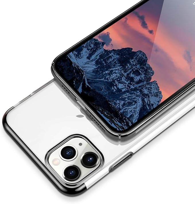E Segoi iPhone 11 Pro Max ケース リング付き メッキ加工 スタンド機能 透明PC 落下防止 おしゃれ 軽量 薄型 アイフォン11ProMaxケース 一体型カバー 6.5インチ (iPhone 11 Pro Max, ブラック)
