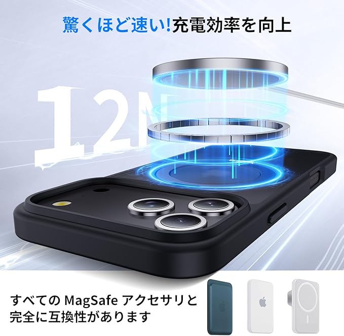 【MagSafe対応・置くだけ充電】 強力な磁気リングを内蔵し、MagSafeアクセサリーに完全対応。17promax ケースを装着したままワイヤレス充電がスムーズに行えます。
