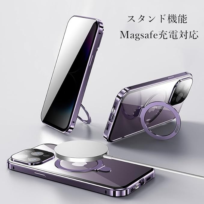 ★ MagSafe充電対応+スタンドリング: iPhone両面ケースはマグセーフワイヤレス充電対応、マグネットリングはスタンドにもなりますので非常に便利なiphone16 MagSafeケースです。
