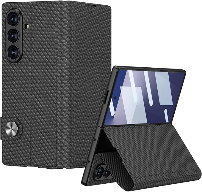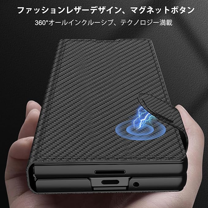 Galaxy Z Fold7 ケース Fold7レザーケース 一体本革/ガラスフィルム付き/手帳型/スタンド機能/ワイヤレス充電対応/カード収納/レンズ保護/耐衝撃/汚れ防止/全身保護 (カーボンファイバー)