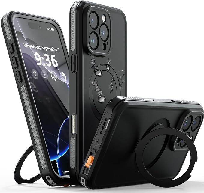 【防水・スタンド機能・MagSafe対応】UMITTOS iPhone 16 Pro Max 用 ケース 防水 衝撃吸収 水中撮影対応 顔認証対応 全面保護 完全防水 防雪 防塵 滑り止め 手持ちやすい 頑丈 耐衝撃 ストラップ付き 雨の日、お風呂など適用 防水ケース(6.9インチ)