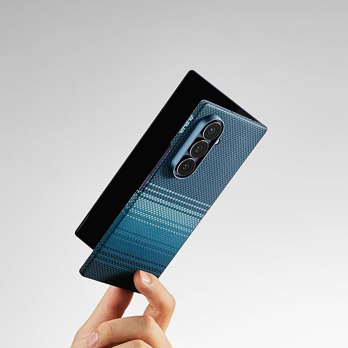 【保護性能を高める強靭素材】100%精選の600Dアラミド繊維から織られたアラミドクロスを真空成型して、スマホケースを成型させた後、コーティングやエッジの処理などをします。アラミド繊維でPITAKAスマホケースを仕上げるまでに、約40プロセスが必要となっています。航空宇宙グレードのアラミド繊維を使用しているため、優れた強靭性、耐久性、耐変色性を持ちます。 ※ご注意:Galaxy Z Fold7ケースは背面保護ケースのみで、前面カバーは付いておりません。