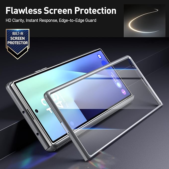[360 フルボディ保護] - スクリーンプロテクター内蔵のGalaxy Z Fold 7ケース。完全透明で傷に強く、タッチスクリーンの感度や反応に影響を与えません。
