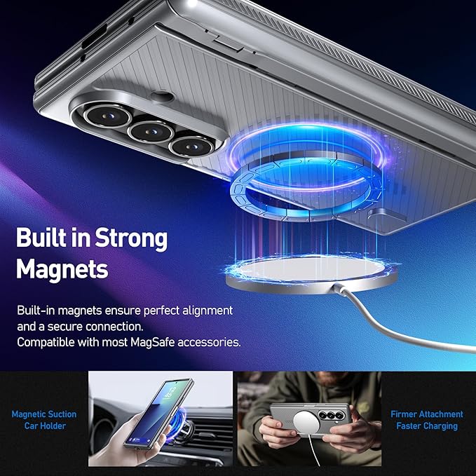 [Magsafe対応] – Magsafe対応のGalaxy Z Fold 7ケース。スタンドの下部にマグネットを配置し、カートマウントアクセサリーへの確実な固定を実現。市販のほとんどのワイヤレス充電器に対応しています。