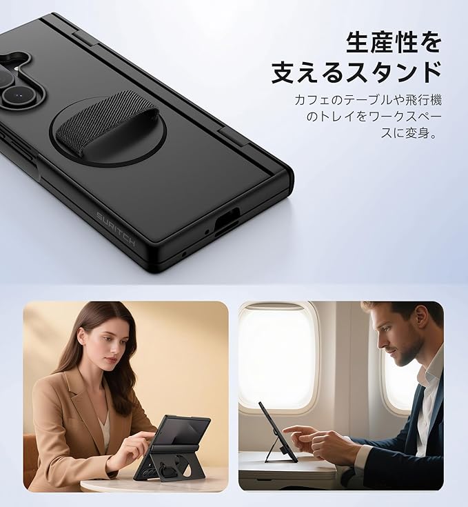 SURITCH 360 グリップ スマホケース Samsung Galaxy Z Fold 7対応実機金型製造、高精度な互換性1. Samsung Galaxy Z Fold 7に完全対応2. 正確な穴位置、すべてのボタンとインターフェースのシームレスなマッチング、スムーズでスムーズな操作性(ワイヤレス充電には対応していません)快適なフィンガーバックル、柔軟なグリップ1. 幅広の伸縮性フィンガーバンドは肌に優しく耐久性があり、片手で安全に快適に携帯電話を握ることができます2. 人間工学に基づいたアルミ合金製ターンテーブルベースは360 回転し、様々なグリップポジションに簡単に対応できます折りたたみ式ブラケットで安定したサポートを提供1. 5000回以上の折りたたみが可能な大面積PCスタンド。耐久性とハンズフリー機能付き(横向き表示のみ対応)2. 55 に折りたたみ調整可能で安定したサポートを実現。大画面でのオフィスやドラマ鑑賞など、様々な用途に対応します包括的な保護とプロ仕様の落下防止機能対策1. シャフトカバーは自動開閉式で、スムーズに操作でき、引っ掛かりがなく、シャフトを傷や衝撃から保護します。2. 背面シェルはPCとTPU製で、柔軟性と耐衝撃性を兼ね備え、落下時の衝撃を効果的に吸収します。3. 前面シェルにはPETスクリーンセーバーを搭載し、タッチ感度が高く、画面を傷や汚れから保護します。パッケージ:スマホケース 1個SURITCHチームをお選びいただき、サポートいただきありがとうございます。